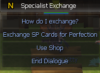 Talk to Perfection Kitty NPC in NosVille, and select Exchange SP Cards for Perfection dialogue.